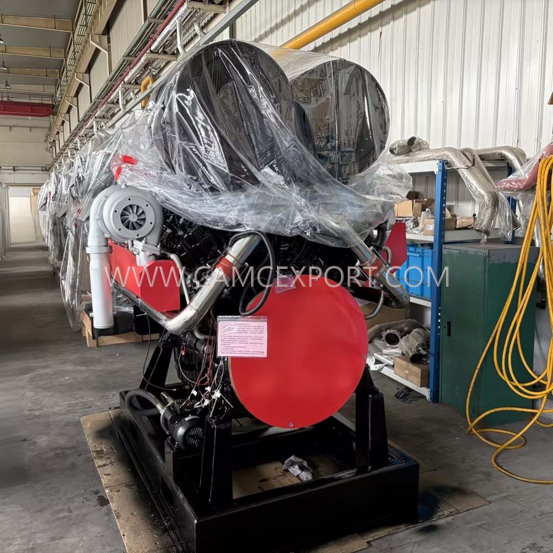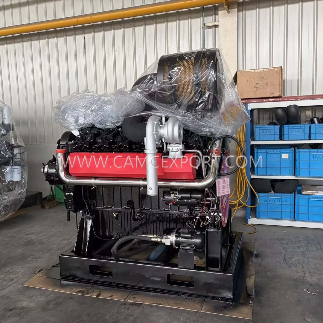The CAMC WP1300 diesel engine is a high-power and high-performance core power equipment, specially designed for scenarios with extreme power requirements such as large ship propulsion, heavy engineering operations, and large generator sets. With advanced technology, strong power, and reliable quality, it provides efficient and durable power support for various large equipment, demonstrating CAMC's technological accumulation and strength in the field of diesel power. The engine adopts a four stroke, water-cooled, direct injection combustion chamber design, combined with an electronically controlled high-pressure common rail system. The fuel injection is precise and controllable, greatly optimizing combustion efficiency and achieving a dual breakthrough of strong power and energy conservation and consumption reduction; Equipped with exhaust gas turbocharging and air-to-air cooling system, effectively improving intake efficiency, accurately regulating engine operating temperature, ensuring continuous and stable operation under high load conditions, and avoiding overheating hazards; Adopting a V-shaped 12 cylinder layout, with a displacement of up to 35.9L, a rated power of up to 1308kw, and a stable speed of 1500r/min, the power output is strong and stable, which can easily cope with high-intensity and long-term continuous operation needs. At the same time, it is equipped with a 24V electric starting system, which can start quickly and conveniently, and adapt to the starting needs of various complex and harsh working scenarios. The overall structural design is scientific and compact, balancing excellent performance and convenient installation, and widely adaptable to high-power power needs in multiple fields.