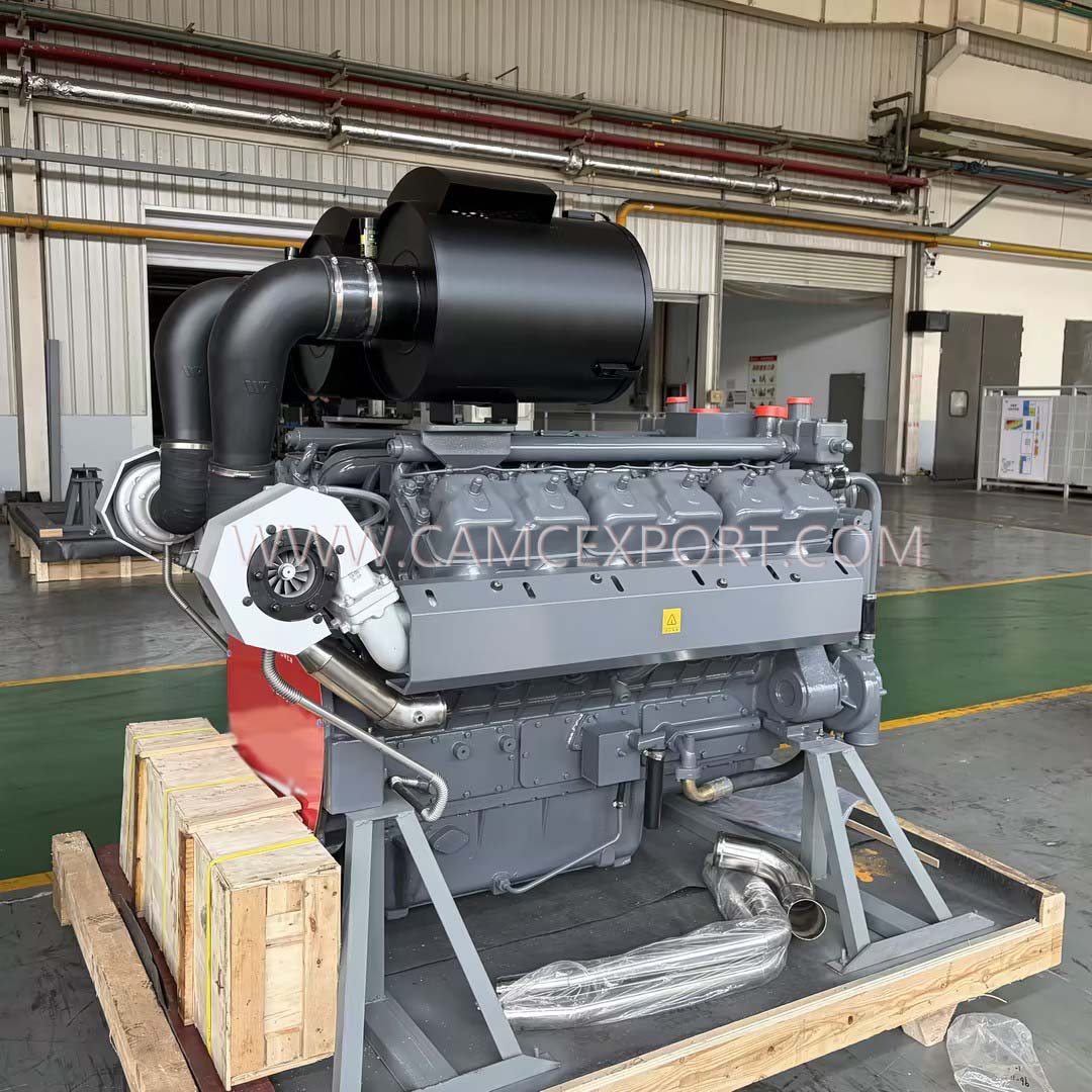 The CAMC WP730 diesel engine is a high-performance and high-power power equipment. With advanced structural design, strong power output, and reliable operating performance, it is widely suitable for heavy-duty engineering, large ship auxiliary power sources, large generator sets, and other scenarios with strict power requirements. It provides stable and efficient power support for various types of equipment, demonstrating CAMC's technical strength in the field of diesel power. The engine adopts a four stroke, water-cooled, direct injection combustion chamber design, combined with an electronically controlled high-pressure common rail system. The fuel injection is precise and controllable, greatly improving combustion efficiency and balancing power and energy saving; Equipped with exhaust gas turbocharging and air-to-air cooling system, effectively optimizing intake efficiency, reducing engine operating temperature, and ensuring stability under high load conditions; Adopting a V-shaped 12 cylinder layout, with a displacement of 28.7L, a rated power of up to 815kW, and a stable speed of 1500r/min, the power output is strong and continuous, which can easily cope with high-intensity and long-term continuous operation needs. At the same time, it is equipped with a 24V electric starting system, which is fast and convenient to start, suitable for the starting needs of various complex work scenarios. The overall structural design is scientific and compact, balancing performance and installation convenience.