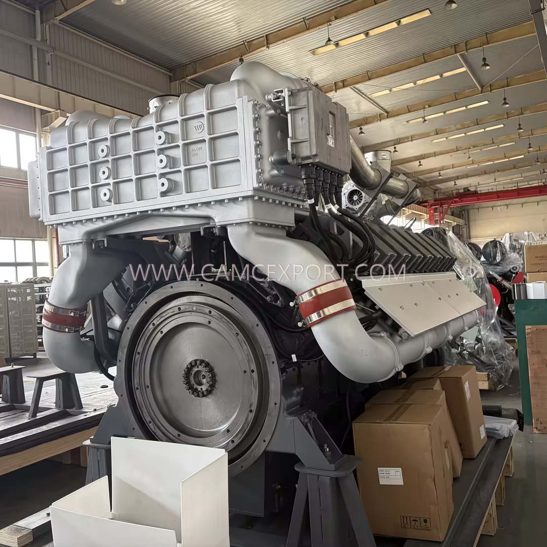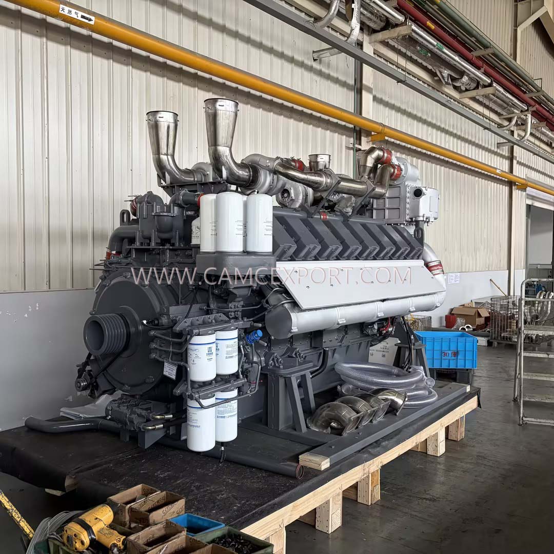 The CAMC new marine diesel engine is a high-performance power equipment designed specifically for the electricity needs of various medium and large ships. With high power output, lightweight design, ultra quiet operation, and convenient practicality, it has become the core preferred choice for power supply in the inner compartments of medium and large cargo ships, engineering ships, and ocean going vessels. It provides stable and strong power support for ship navigation, communication, power supply, and various auxiliary equipment, demonstrating CAMC's technological breakthrough in the field of marine power. The engine adopts a 16 cylinder diesel engine design and is made of advanced lightweight materials. Compared to traditional bulky models, it is easier to transport, install, and maintain, which is in line with the spatial layout characteristics of ship engine rooms; The calibrated speed is stable at 1500r/min, coupled with an electronically controlled high-pressure common rail and turbocharging system, precise fuel injection, optimized intake efficiency, not only greatly improves power performance, but also achieves high efficiency and energy saving. The rated power can reach 1848-2660kW, which can easily meet the high load electricity needs of medium and large ships. At the same time, it is equipped with 6 × 165AH, 12V batteries, which start smoothly and provide stable power supply, ensuring the continuous and efficient operation of the equipment. The engine has been specially optimized for ultra quiet operation, with structural adjustments, sound insulation and noise reduction design, and precise component tuning, significantly reducing operating noise and minimizing interference with crew life and ship environment, in compliance with ship quiet operation standards; The overall size is 4285 × 2400 × 2510mm, with a compact and orderly structure that can be installed neatly in the inner cabin of the ship without occupying too much space; As a brand new product, it has undergone rigorous factory testing and all performance indicators have reached high industry standards. After installation, it can provide power to ships without additional debugging. With mature manufacturing processes, it is suitable for complex operating environments such as high humidity and high salt spray on ships, and has outstanding durability, providing solid power guarantee for long-term stable navigation of ships.